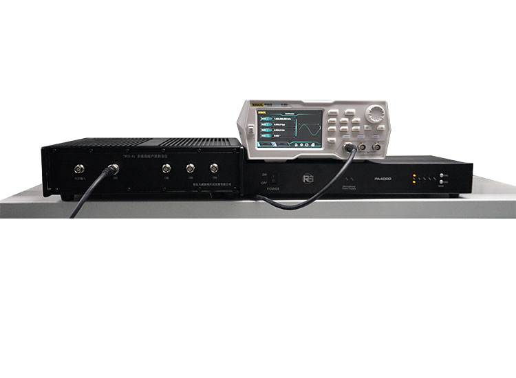 3)采用3-70kHz的寬頻功放和揚聲器,在測量頻帶內平坦度≤±1dB,測試被測儀器的頻帶特性。
