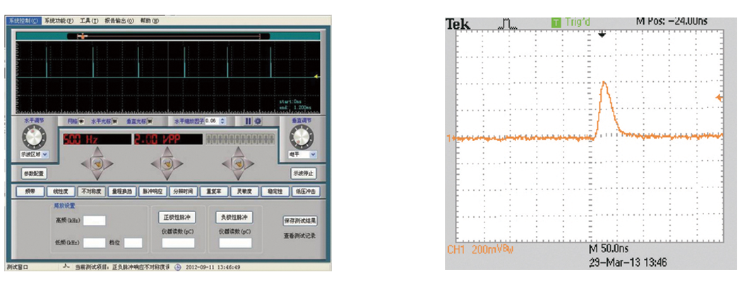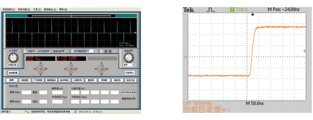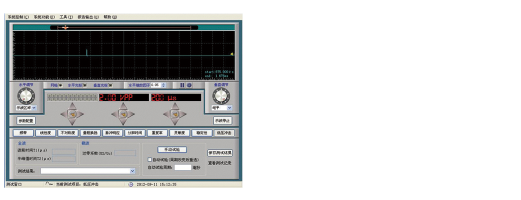6.100V標準沖擊波形,對局部放電檢測儀器的通道、測量阻抗進行低電壓沖擊試驗。