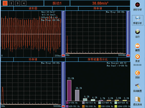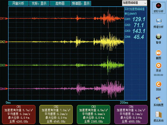 3、強大的振動信號分析功能,包括:加速度峰峰值、加速度有效值、有效平均速度、位移、振動主頻、時頻、頻譜分析等,并利用小波、SVM算法實現(xiàn)振動信號功率、能量的異常變化分析,并可進(jìn)行振動源位置分析,以及變壓器內(nèi)部機械類松動性故障分析。