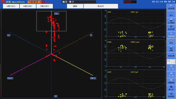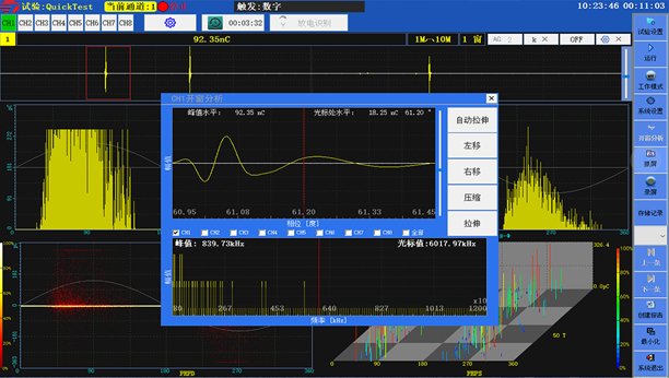 6、放電識(shí)別:內(nèi)置放電脈沖識(shí)別和統(tǒng)計(jì)識(shí)別算法,根據(jù)放電圖譜自主識(shí)別放電類型;