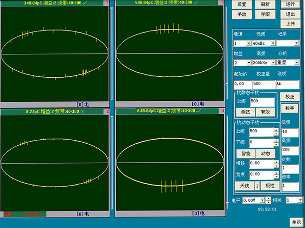 1、高壓電氣設備局部放電檢測,4通道獨立采集數(shù)據(jù)(非通道轉(zhuǎn)換式),同步信號采樣,4個窗口單獨顯示局放測量結(jié)果。