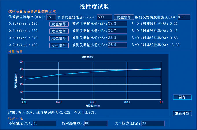 線性度誤差試驗界面
